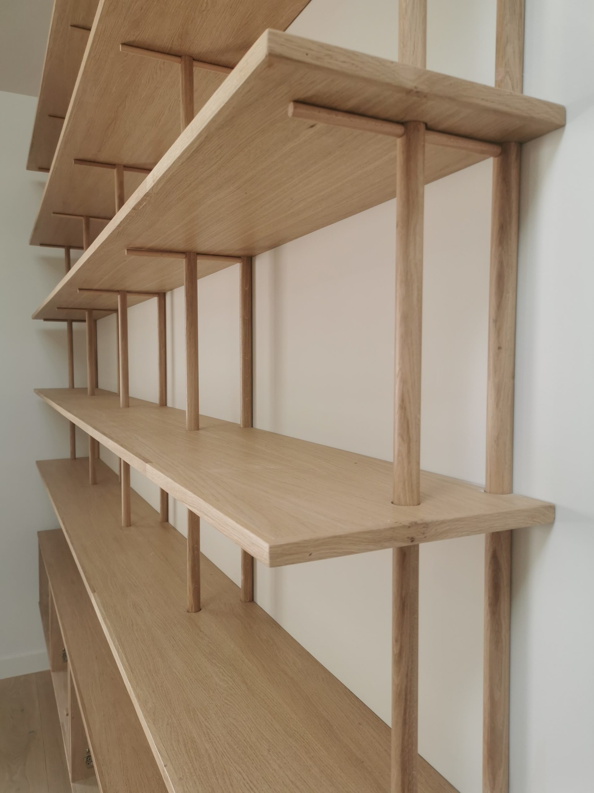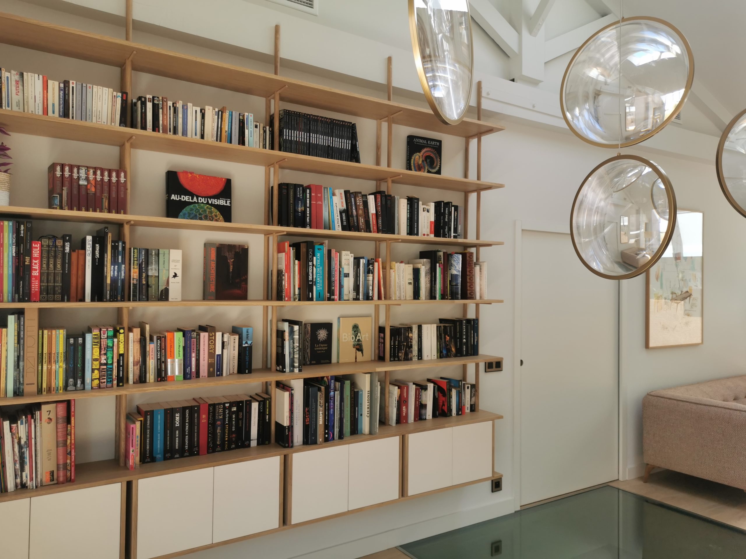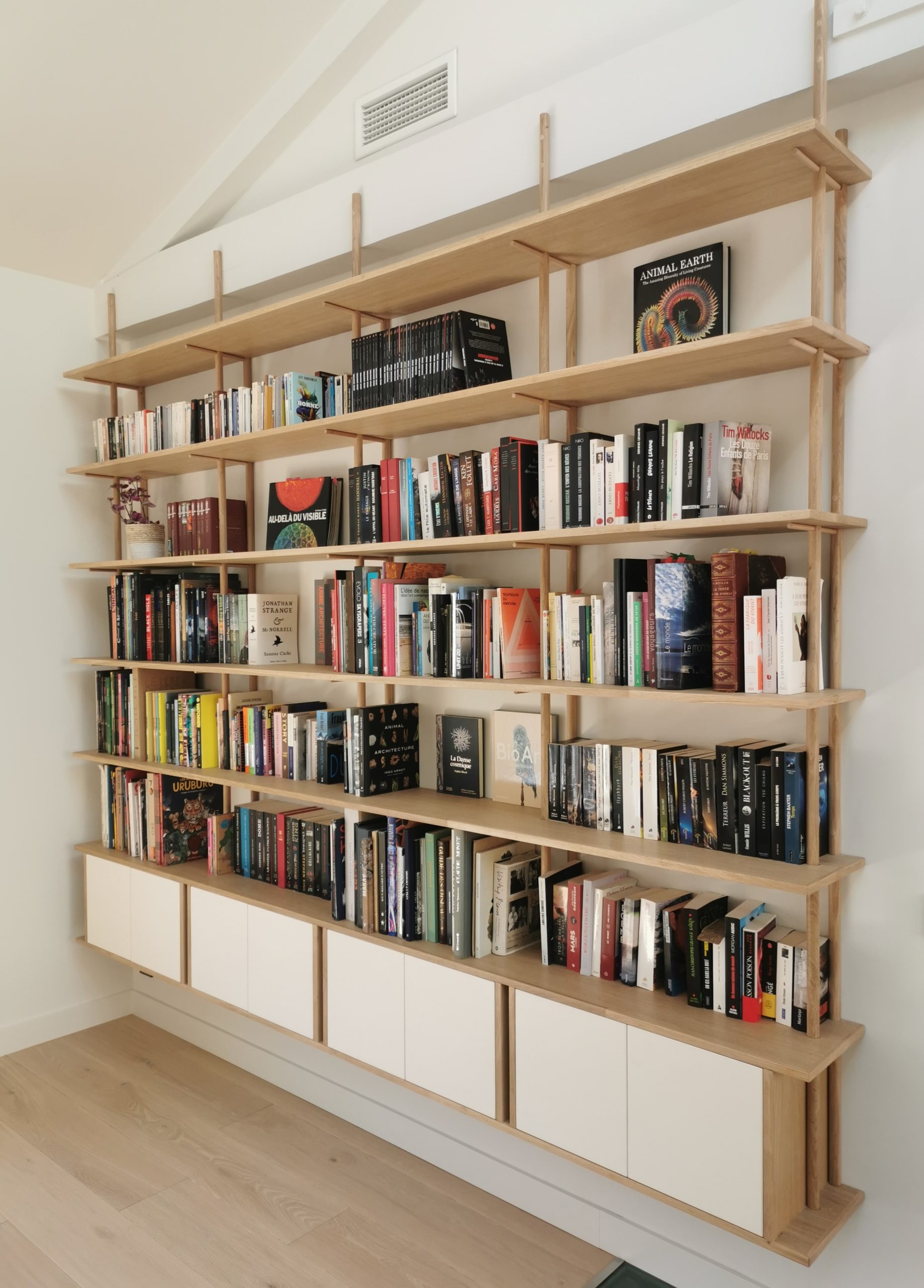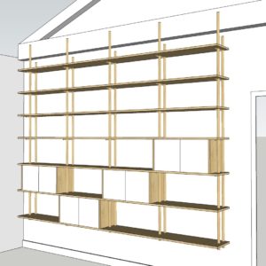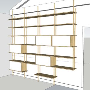 Bibliothèque  en Latté Chêne et Chêne massif , portes en stratifié.
